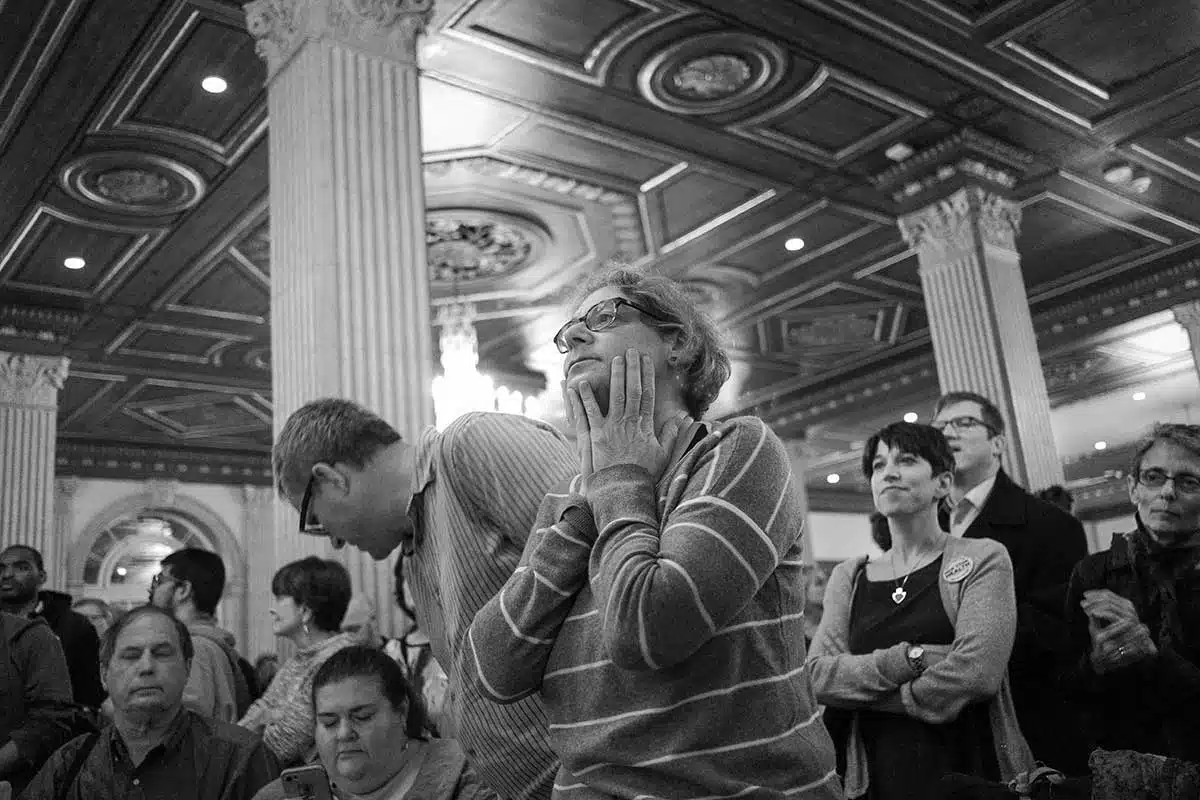 Democrat supporters gathered at the Marriott Hotel in downtown Syracuse Tuesday evening to watch as the results of the 2018 midterm elections came in. Only one of the three local blue candidates took home a clear win.