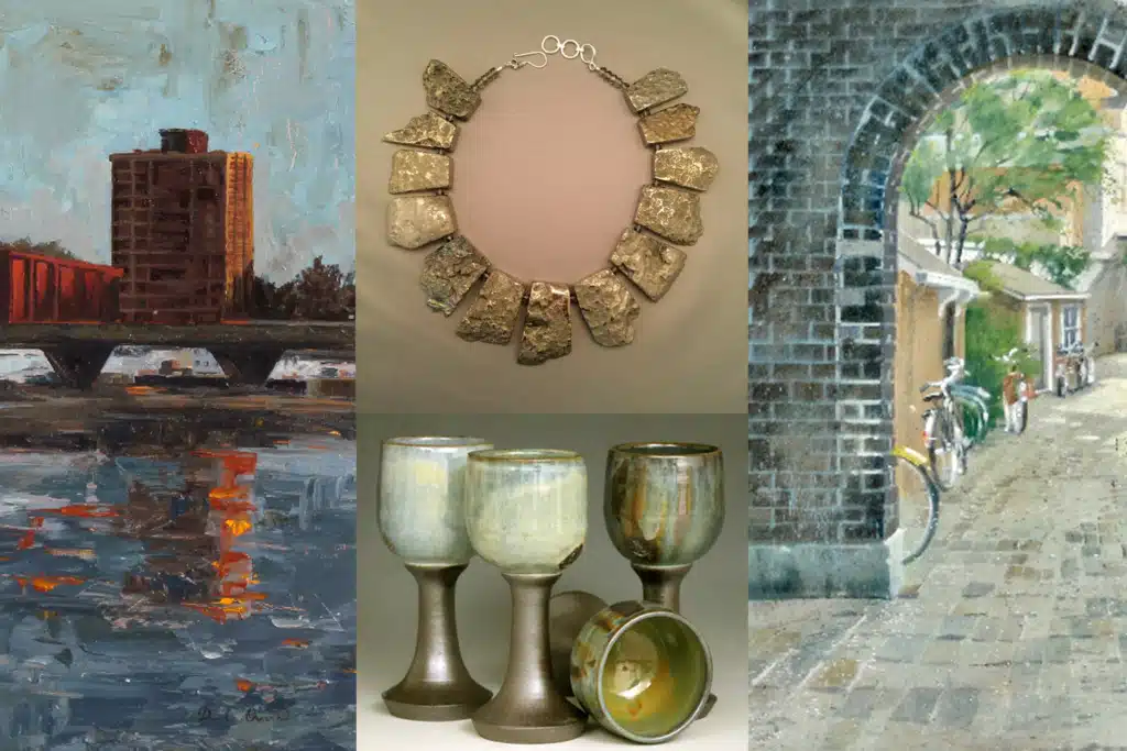 Finally, the show presents handcrafted, silver and gemstone jewelry made by Judy McCumber. These works include necklaces, earrings, and bracelets, among others.