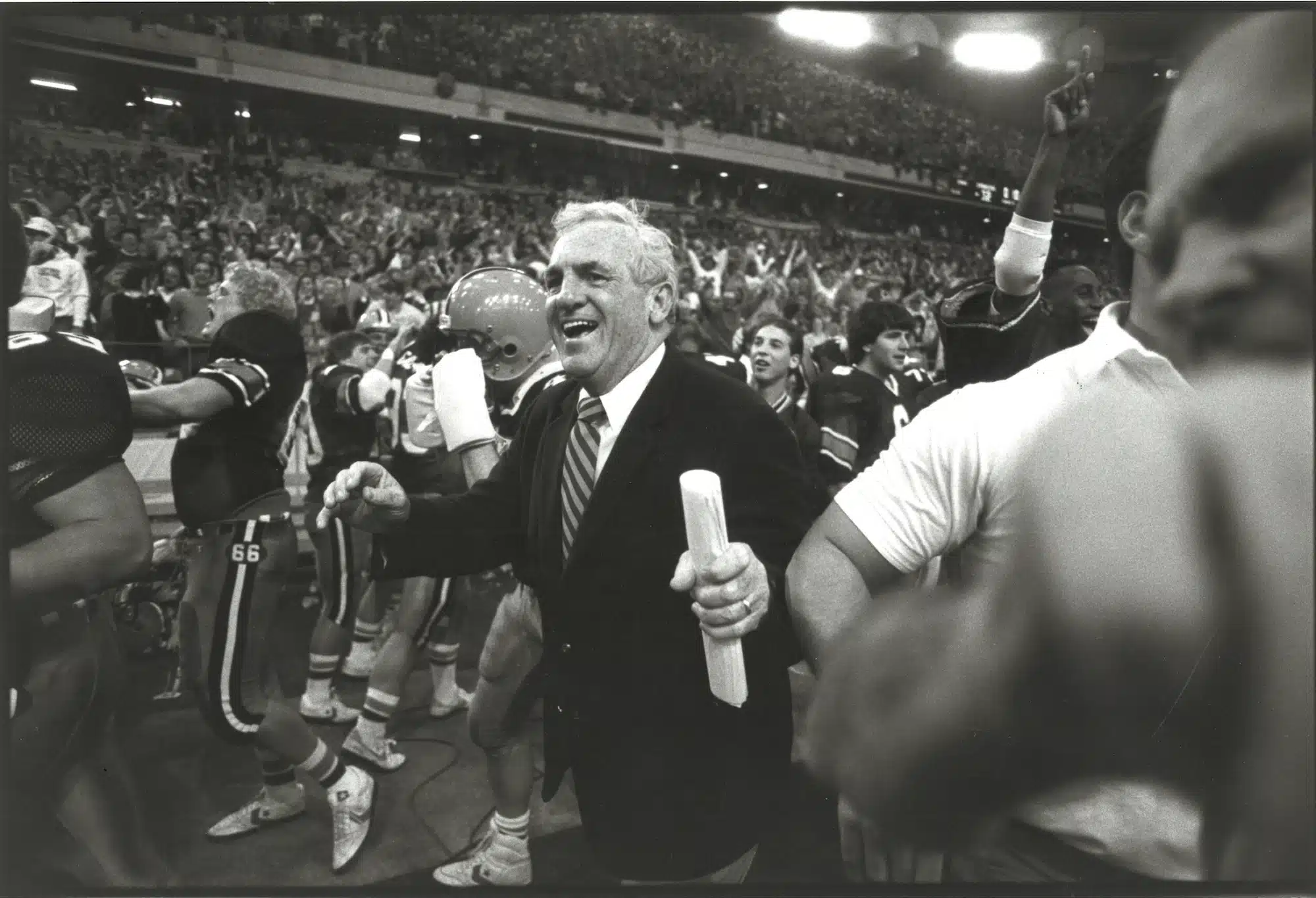 In 1987, with McPherson as his quarterback, Coach Mac led the Orange to the second undefeated season in program history. (The first, in 1959, resulted in Syracuse’s first and only national championship.) The 1987 team went 11-0 in the regular season and tied Auburn 16-16 in the Sugar Bowl as Tigers coach Pat Dye opted for a 30-yard field goal on the last play of the game rather than going for the win.