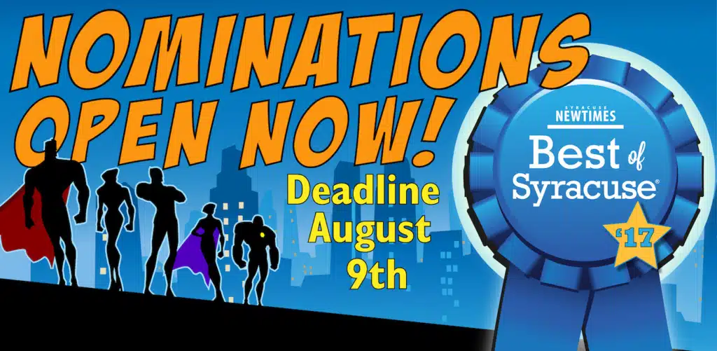 Nominations have ended. Thank you to all who participated, and please visit syracusenewtimes.com on Aug. 23 for the voting portion of Best of Syracuse!