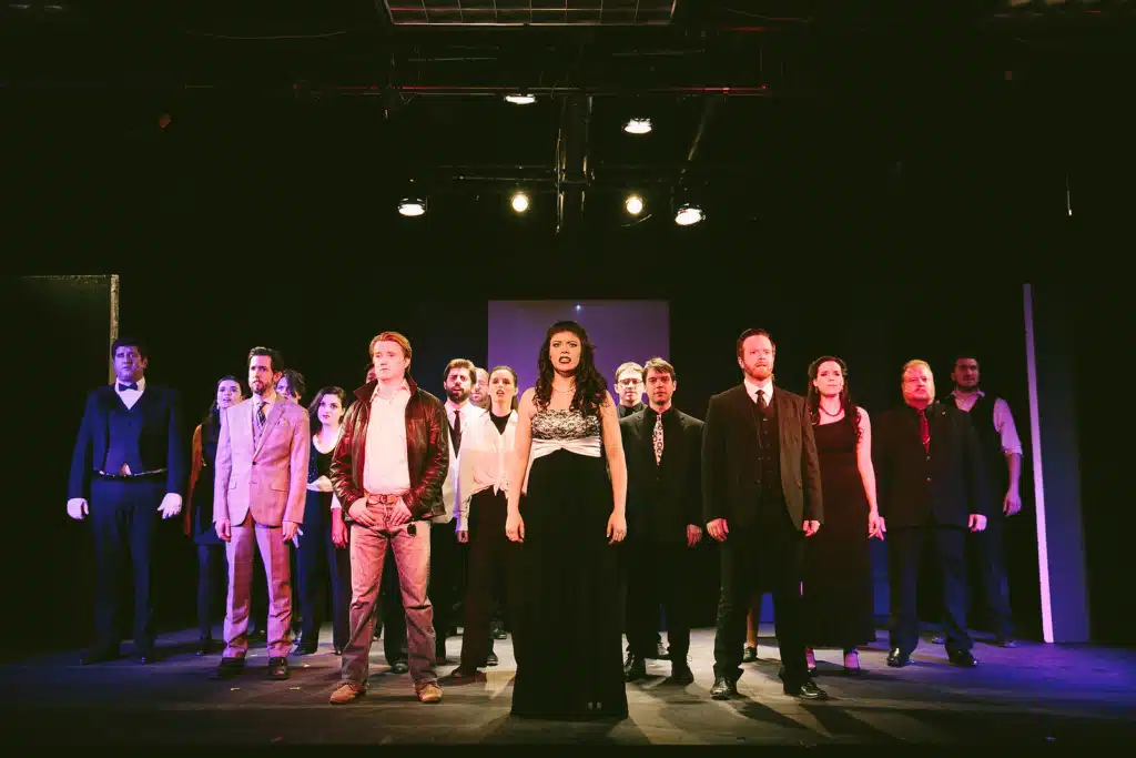 In a candid program note, director Searle acknowledges that his motivation to revive Chess has long been in gestation, and it shows. He has superior voices in all the key roles, such as Paul Thompson as the loutish American Freddie Trumper, Benjamin J. Sills as layered and sympathetic Soviet Anatoly Sergievsky, and Ceara Windhausen (nearly unrecognizable in a black wig) as Florence Vassy, the woman who comes between them. Frequently dominating the scene is Steve Gamba as the whitegloved Arbiter of the matches.