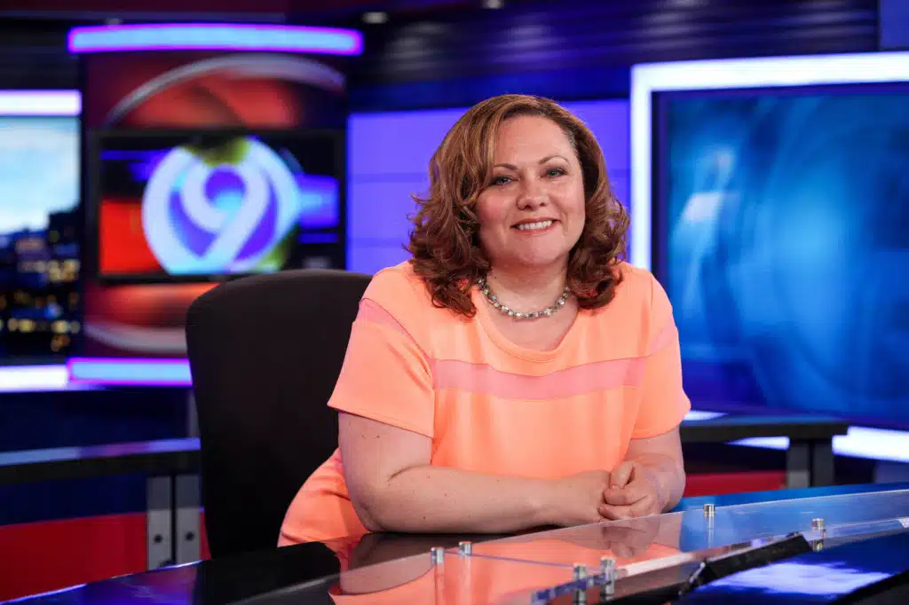 Tammy Palmer sits at the News Channel 9 news desk during a broadcast. Michael Davis photo
