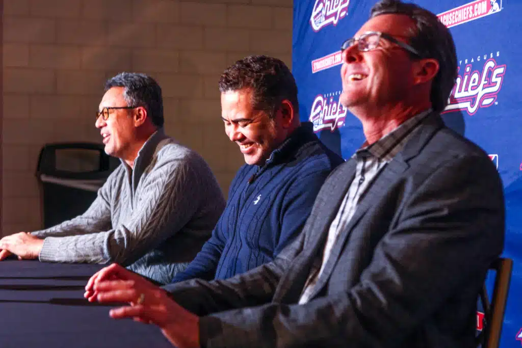 Darling on the proximity between Syracuse and New York City: “The proximity, of course, is a game-changer for the Mets. The ability to, after a ballgame, have an injury to a player and be able to throw him in a car here in Syracuse and have him there for the next day, it’s just going to be a chance for a great partnership.”