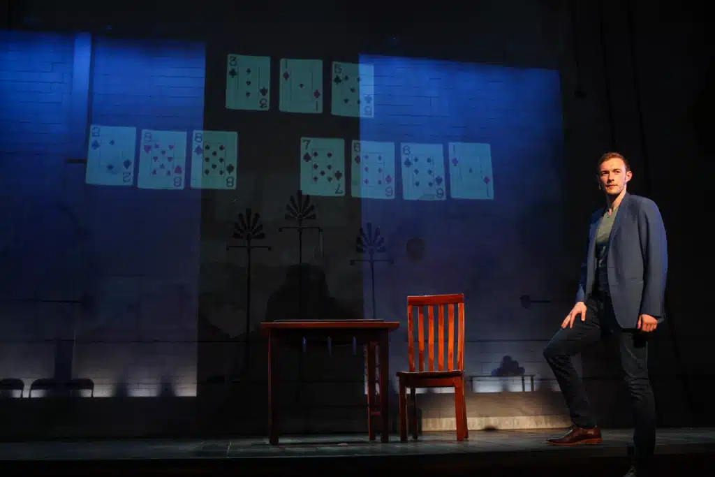 Schneider is the 32-year-old lead in Andrew Hinderaker’s The Magic Show, Syracuse Stage’s season finale running through May 13. Hinderaker tailored the role of the Magician (no other name) in The Magic Play for Schneider and his breath-stopping tricks in a handful of productions around the country, most notably at Chicago’s Goodman Theatre in October 2016. Although there is no suggestion that the role is biographical, no one else has ever played it.