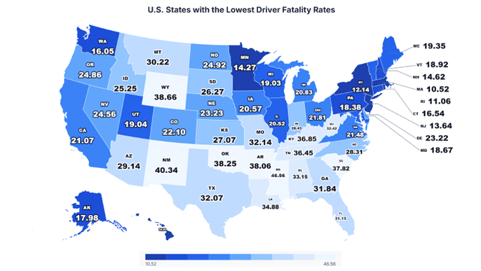 Top 10 States With the Lowest Driver Fatality Rates (2019–2023) |