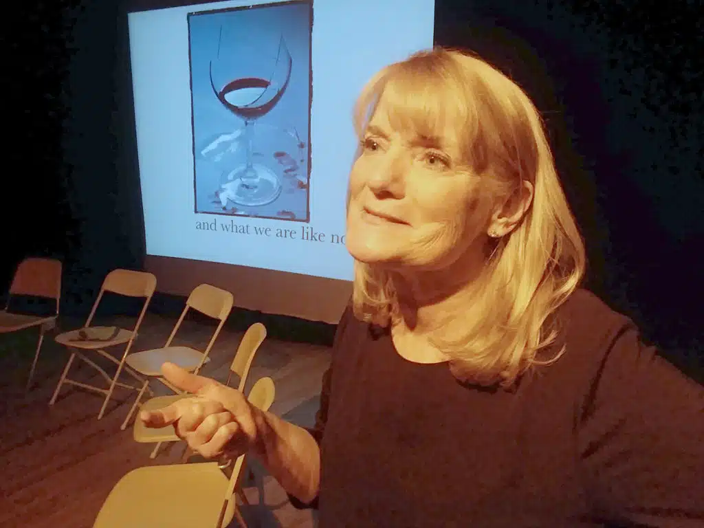 Handron might have worked as a graduate student researcher, but each of her monologues is structured as if it came from an Alcoholics Anonymous 12-step session. The opening is a variant on the admission, “I am an alcoholic.” The tone with which Lennon delivers that line signals the direction of the monologue. It’s different every time.