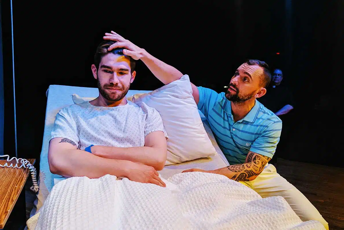 Reaching to his heart while Gordon’s body is on the mend are his lover Roger (Joshua Kimball) and his still-young mother Mimi (Krystal Wadsworth). In a cast filled with impressive voices, they deliver the more affecting emotions, beginning with Wadsworth’s torchy duet with Gordon, “Mother’s Gonna Make Things Look Fine,” and even more with “The Music Still Plays On.” Kimball scores big again and again, especially in duets with Gordon, including “Just Go” and “Time.”