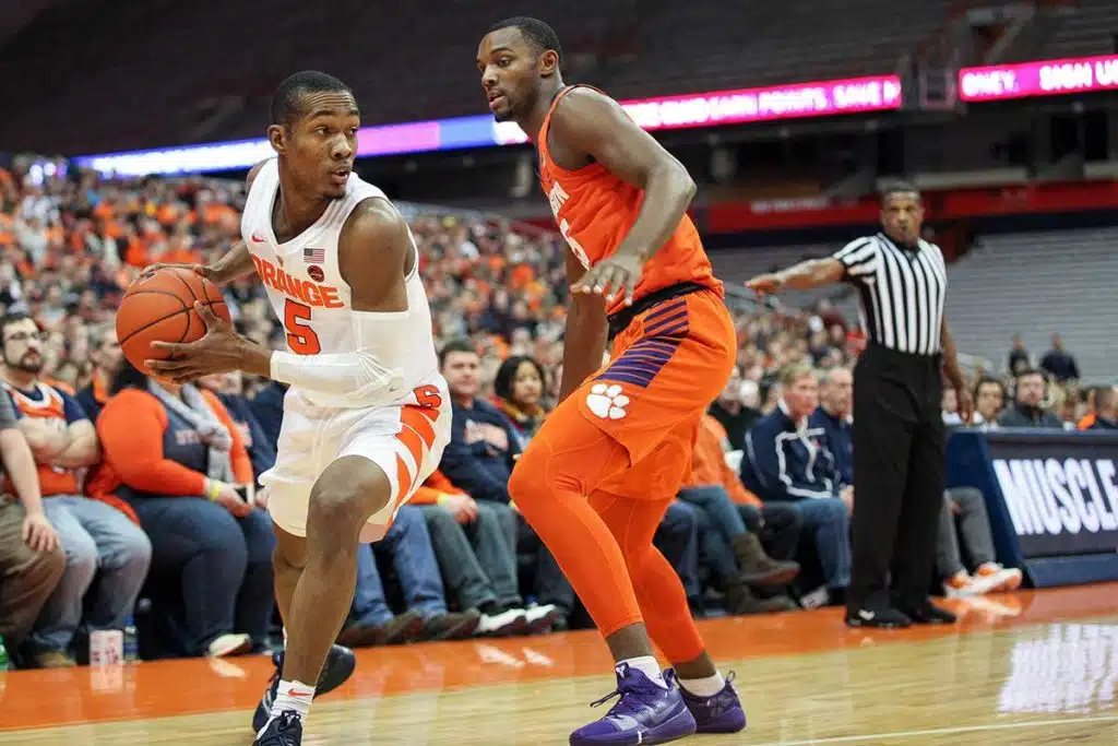 Photos SU men’s basketball takes 8-point win over Clemson (photos) By Michael Davis Posted on January 16, 2019 Share Tweet Share Share Email Comments In the second matchup of the ACC Jan. 9, the Syracuse University men’s basketball team took home a win at the Carrier Dome over the Clemson Tigers 61-53. The SU team was on a roll, having beat Notre Dam the week before on Jan. 5 72-62. Related Items:photos, SU men's basketball, syracuse basketball Share Tweet Share Share Email Recommended for you Over the Rainbow: 2019 Syracuse Pride Parade at the Inner Harbor (photos) Over 6,000 flock to Franklin Graham crusade in Syracuse (photos) Thousands celebrate Memorial Day with 2019 Watchfire (photos)