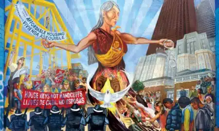 Images from the 2019 Peace Calendar range from artistic illustrations about environmental protections to photos of global demonstrations for human rights.