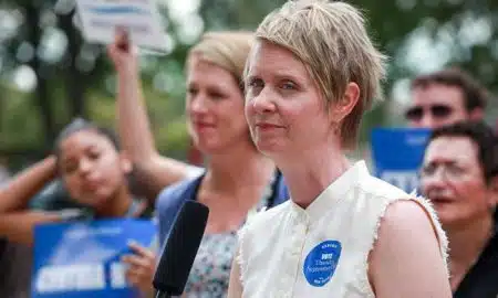 A dozen supporters of Cynthia Nixon’s campaign for governor filtered into Forman Park on East Genesee Street across from the Crowne Plaza...