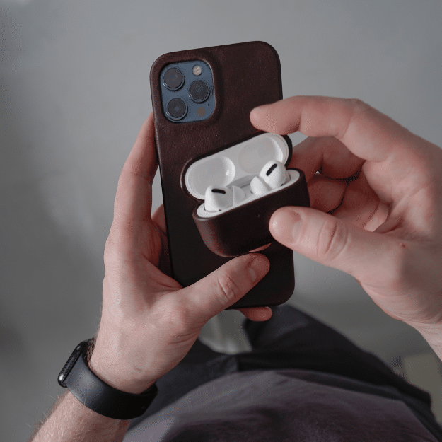 A dark brown leather phone case offers depth without bold contrast. It bridges black and tan wardrobes seamlessly, working across business and casual settings.
